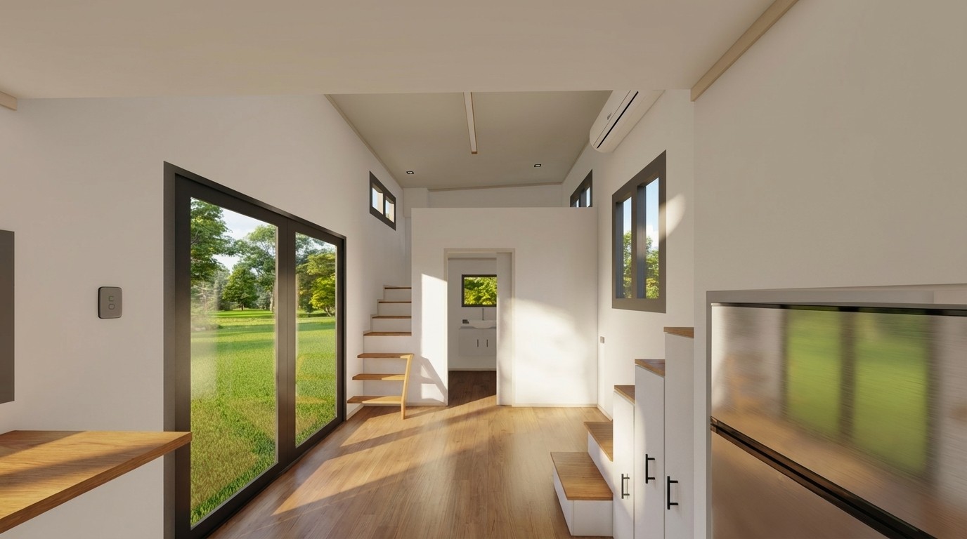 En el núcleo del Modelo 1 de Intiny, la propuesta de diseño se fundamenta en la optimización espacial y la funcionalidad inteligente. Concebido como una vivienda compacta pero altamente eficiente, el proyecto prioriza la entrada de luz natural, la ventilación cruzada y el aprovechamiento del espacio vertical mediante dormitorios tipo loft. Cada elemento se integra de forma deliberada para maximizar el confort dentro de una huella reducida, dando lugar a un entorno habitable equilibrado donde el diseño transforma el espacio limitado en una experiencia flexible y eficiente.